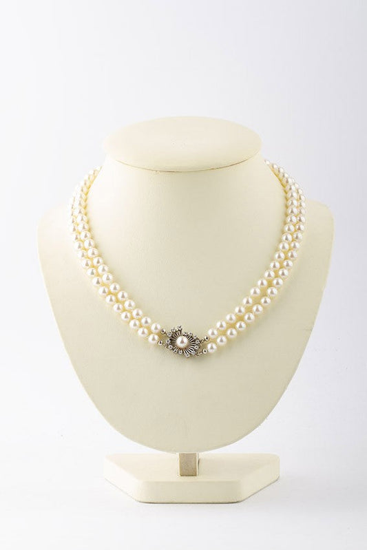 2-strand cultured pearl necklace with white gold clasp and diamonds