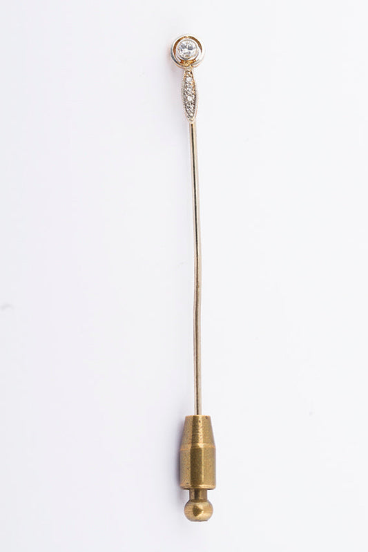 Antique 9-karat lapel pin with brilliant-cut diamonds (octagonal). (Below legal gold content).