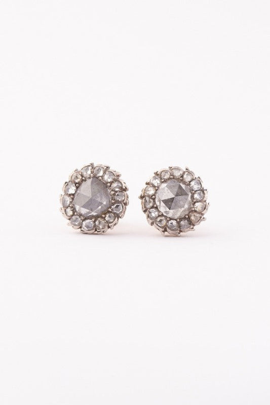 Antique gold entourage earrings with rose-cut diamonds in each one