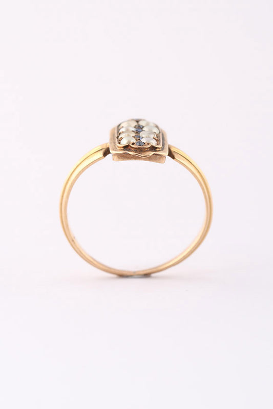 Antique 18 carat gold ring with pearls and sapphires (France).