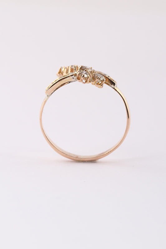 Antique 18-carat gold ring with 3 brilliant-cut diamonds and 11 rose-cut diamonds.