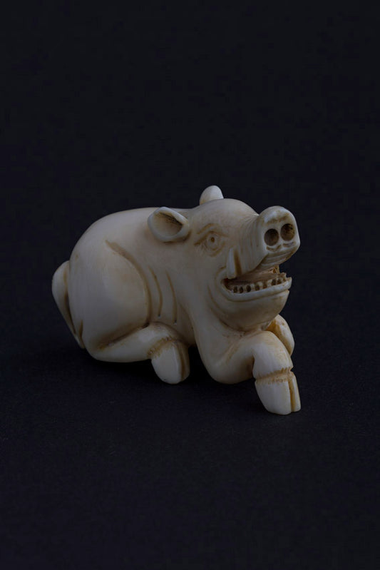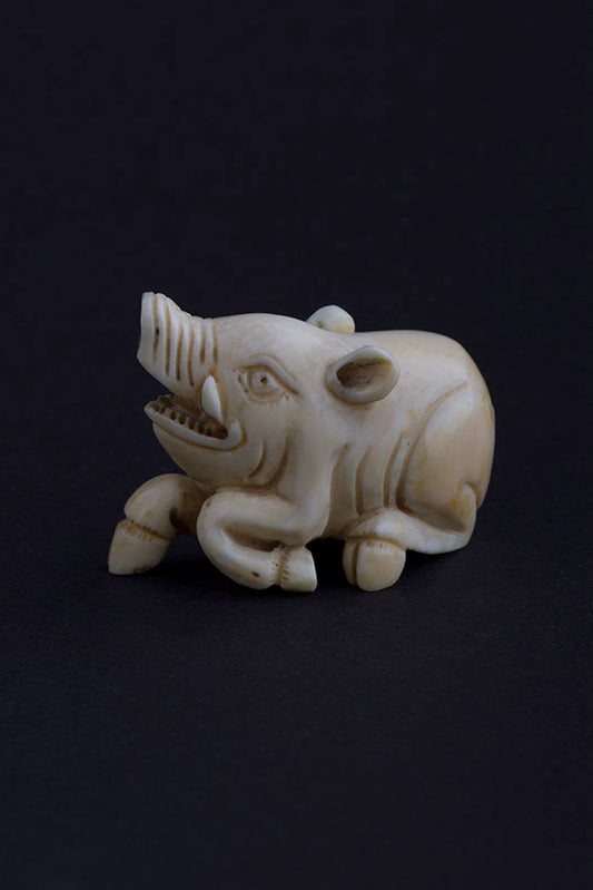 Antique ivory netsuké in the shape of a pig. Japan, circa 1900.