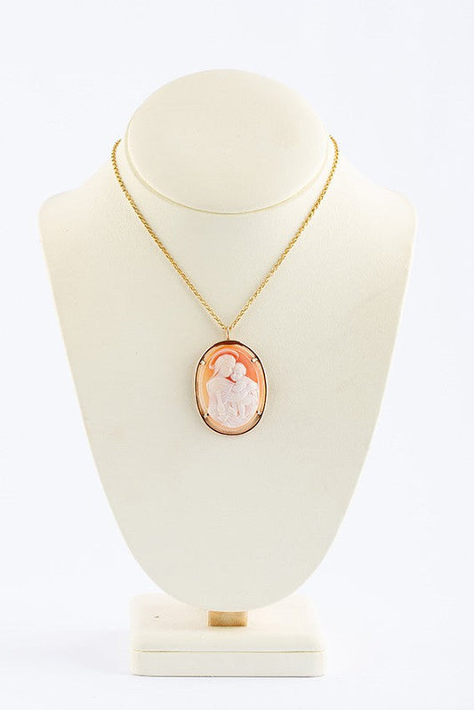 Antique shell cameo pendant in a 9-carat frame (below legal ground) on an 18-carat gold jasseron necklace.