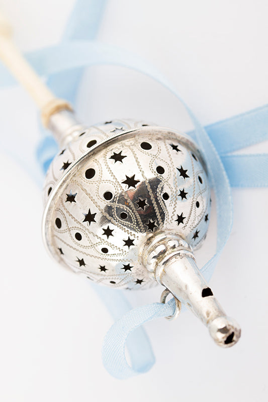 Antique silver rattle. Master's mark: Abraham van Gelder. Amsterdam, circa 1890.