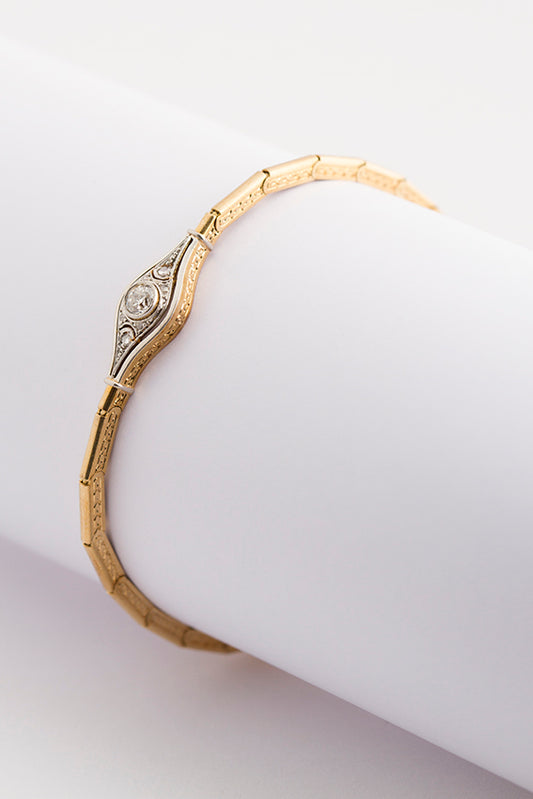 Antique 14 carat gold Art Deco bracelet with a brilliant and six rose-cut diamonds.