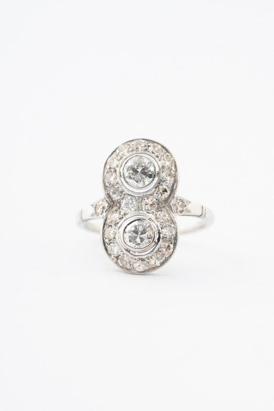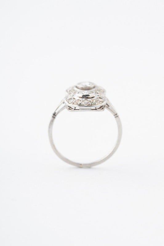 Art Deco platinum princess ring with 2 brilliant-cut diamonds