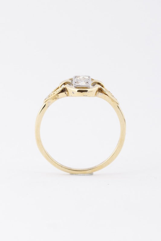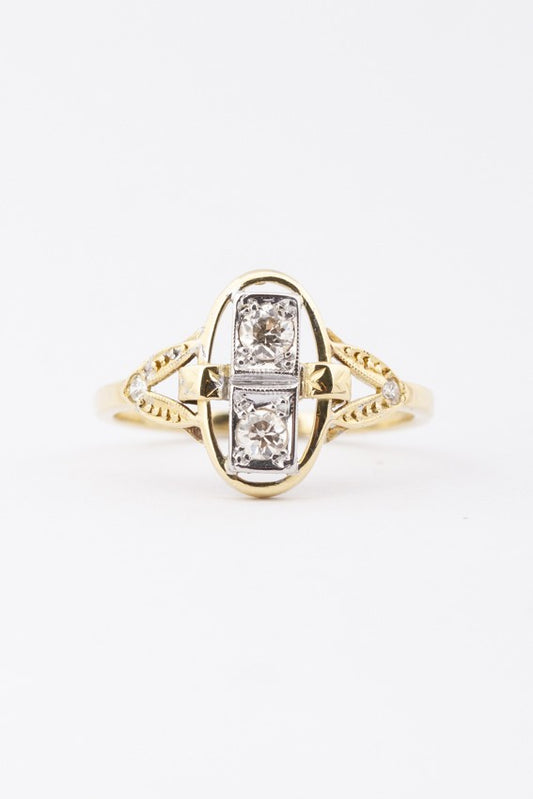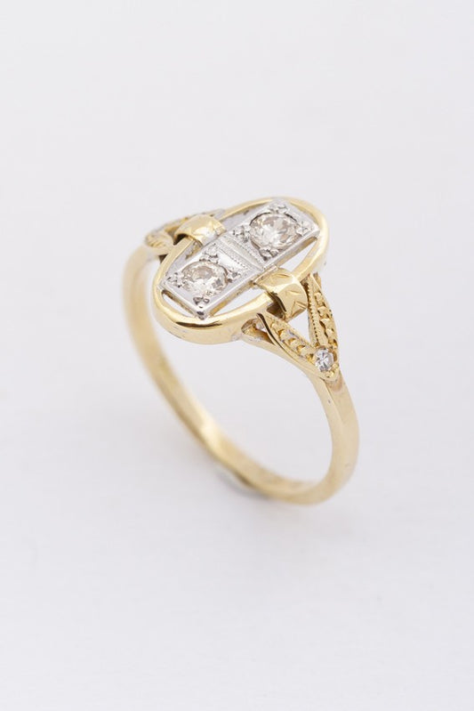 Gold Art Nouveau ring with brilliant cut diamonds