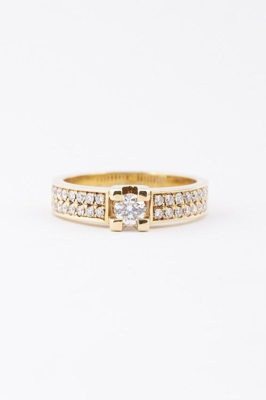 Gold band ring with diamonds
