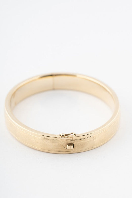 14 carat gold bangle with hinged closure.