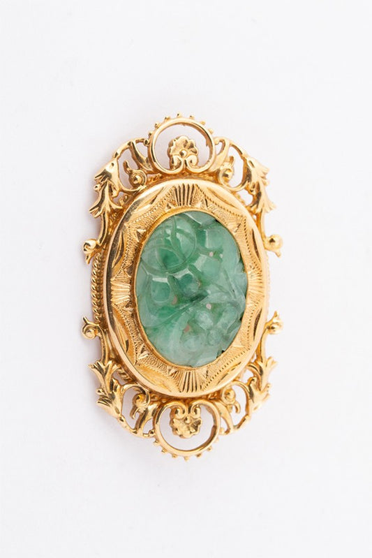 Gold brooch with jade