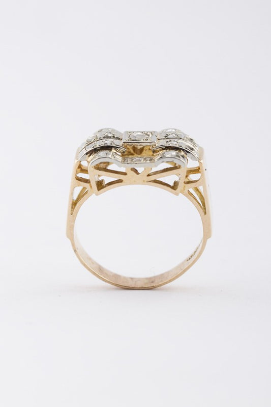 Gold démodé (retro) ring with diamonds