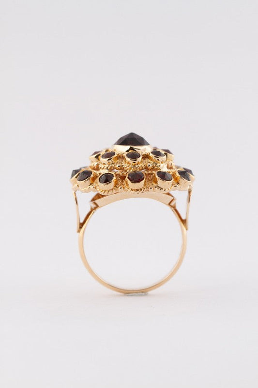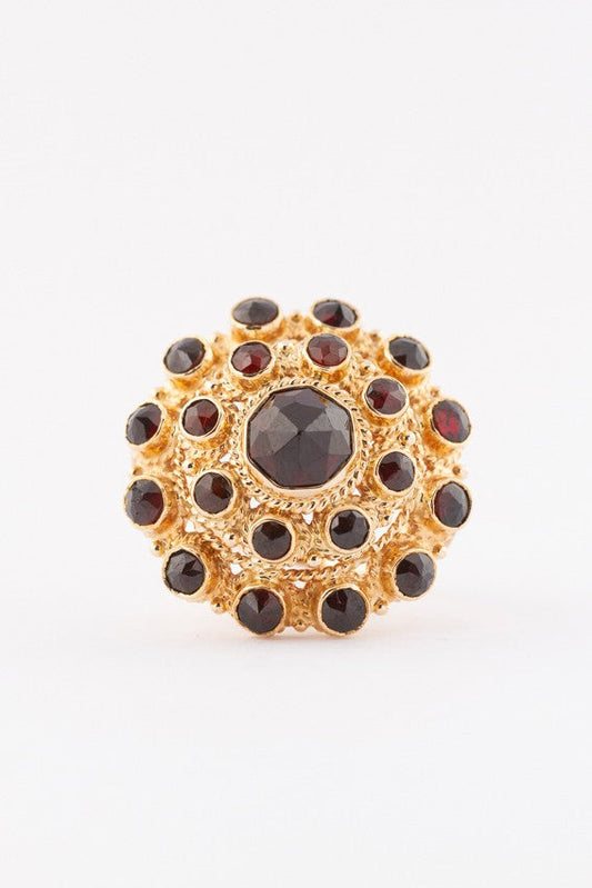 Gold double entourage ring with garnets
