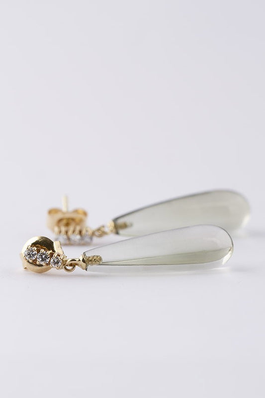 Gold earrings with brilliants and prasiolite