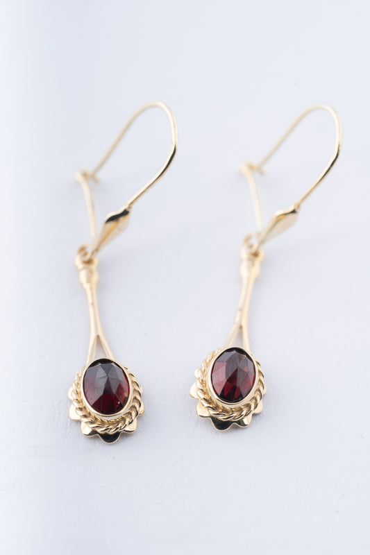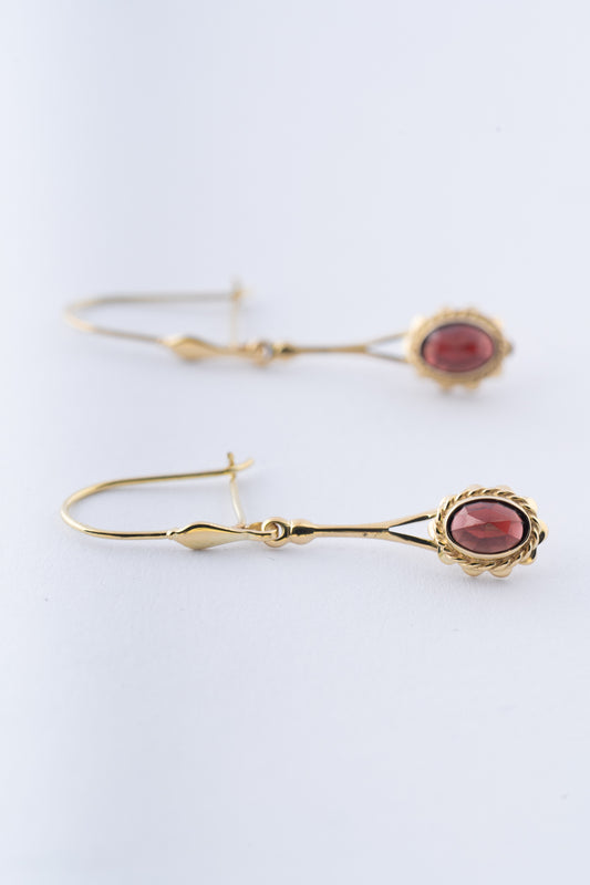 14 krt. gouden oorhangers met in elk een granaat.