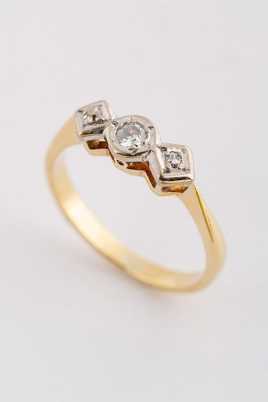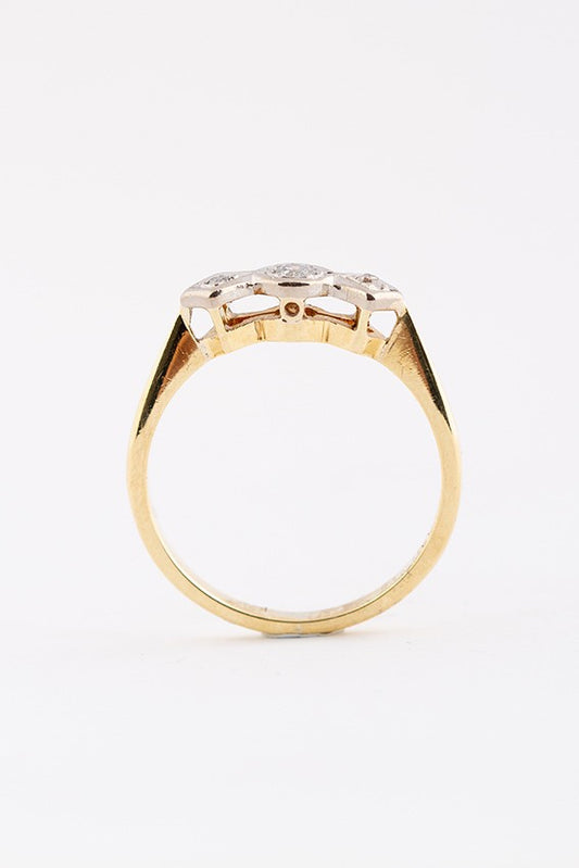 Gold row ring with 3 old-cut diamonds