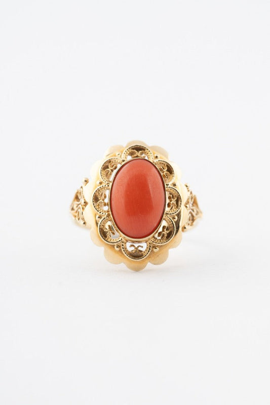 Gold ring with blood coral