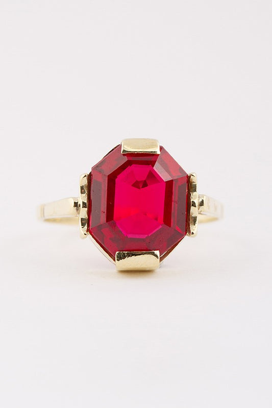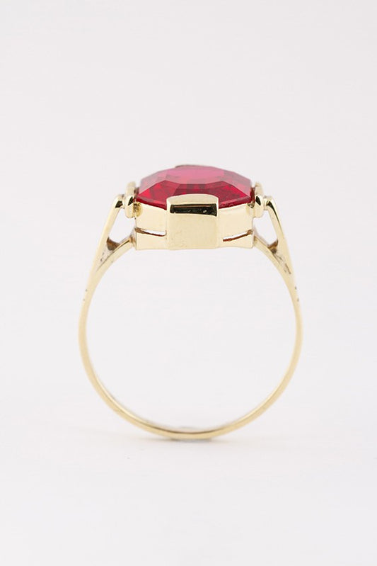 Gold ring with a synthetic ruby