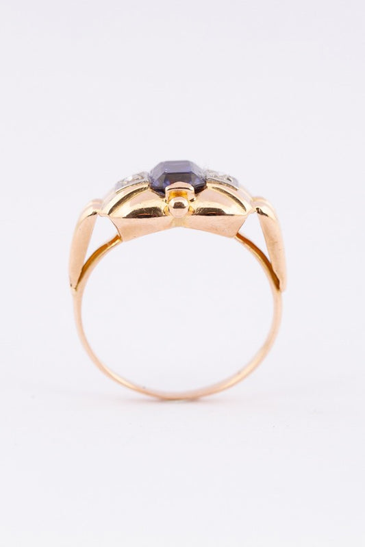 Gold ring with iolite and two diamonds. 1950s.
