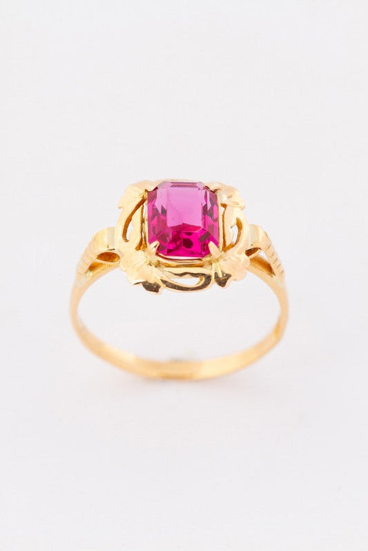 Gold ring with red crystal