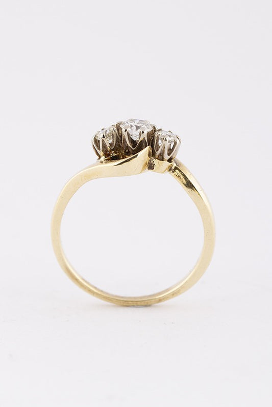 14 kt gold ring with 3 brilliant-cut diamonds, 1 x 0.16 ct, 2 x 0.06 ct. Total approx. 0.28 ct.