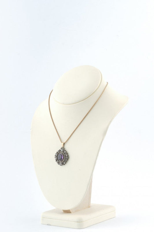 Gold/silver pendant with amethyst and diamonds on a gold foxtail necklace