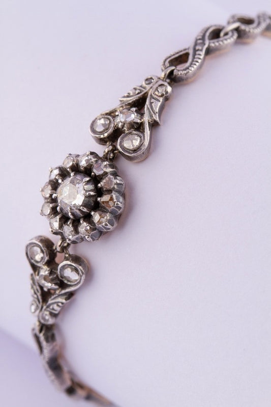 Old 14 carat gold/silver link bracelet with rose-cut diamonds set in silver.