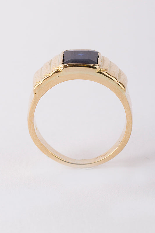 18 carat gold solid men's ring with sapphire.