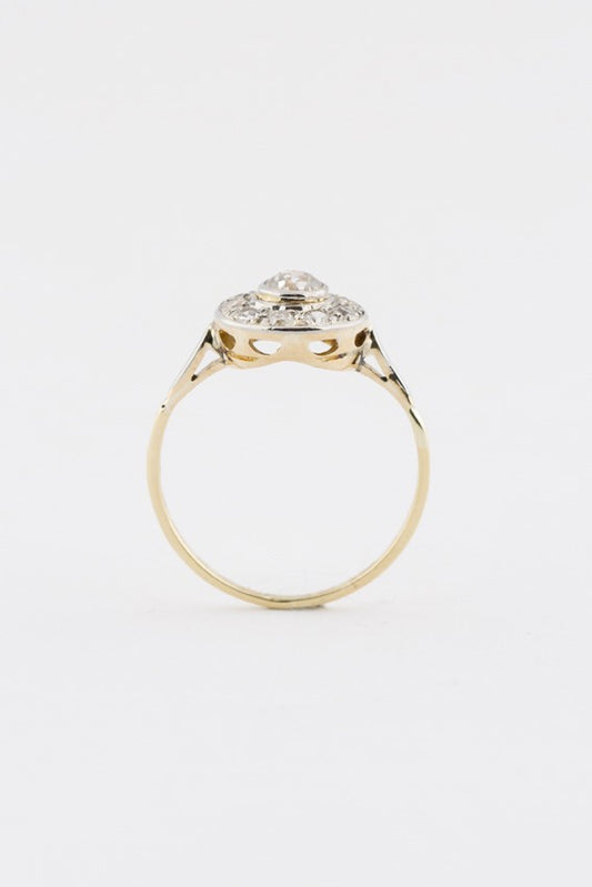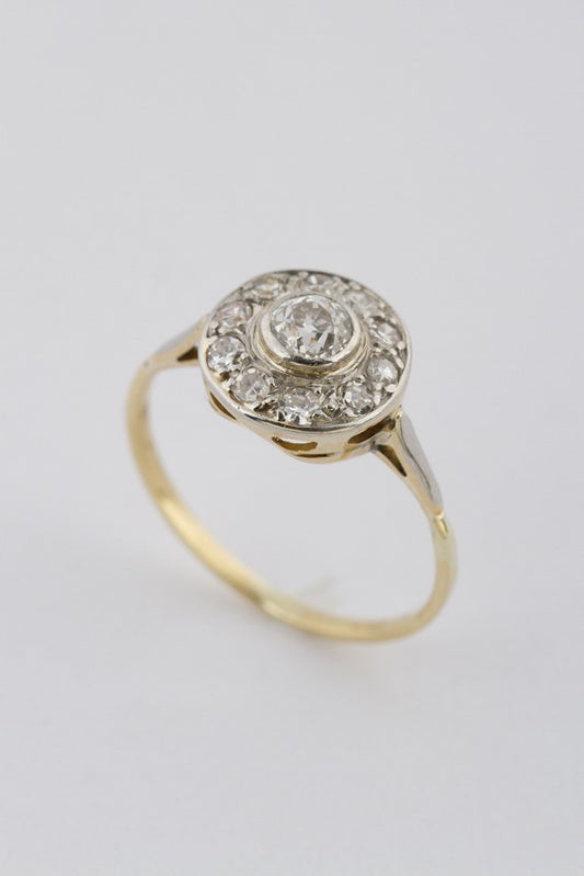 Old 9 carat entourage ring with old-cut brilliant