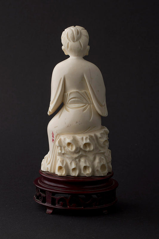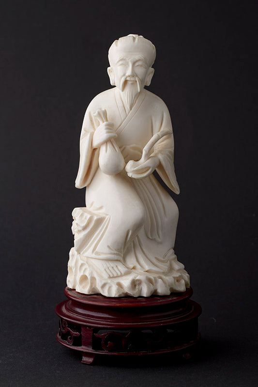 Old ivory sculpture of a man with a money bag and ruji