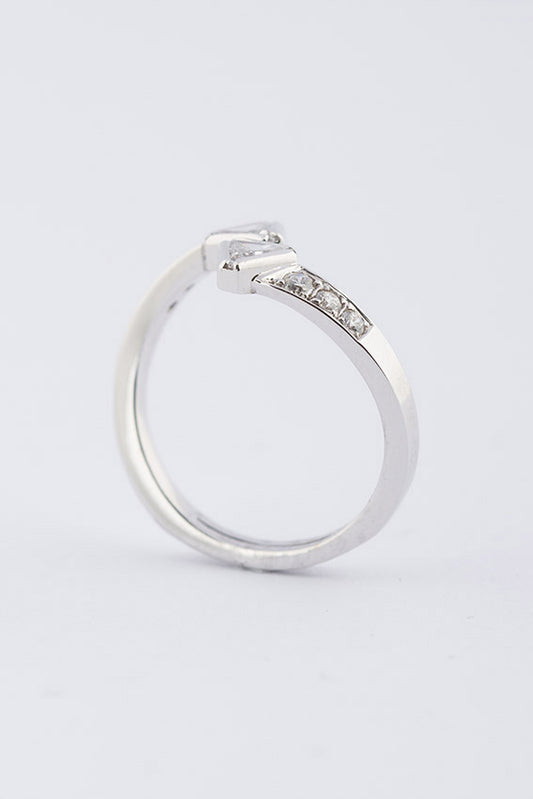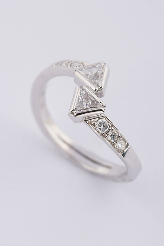 18-karat white gold ring with two triangle-cut and six round-cut brilliant-cut diamonds. Total weight approx. 0.40 ct.