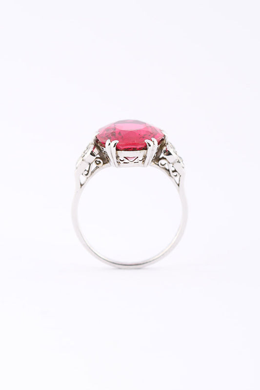 14 carat white gold Art Deco ring with synthetic ruby and 6 diamonds (octagon).