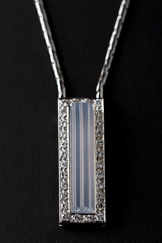18-karat white gold necklace and pendant with chalcedony and 28 diamonds. Total weight approx. 0.85 ct.