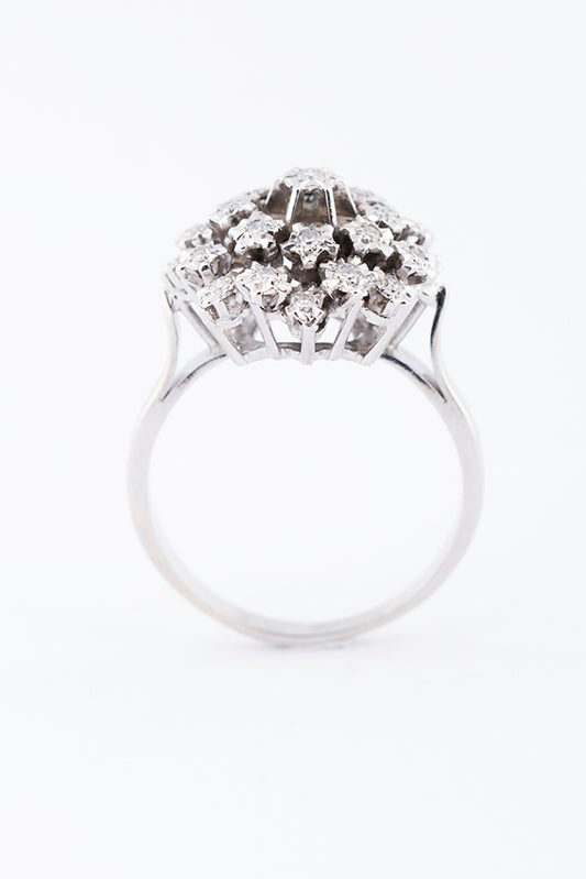14 carat white gold double entourage ring with brilliant and diamonds (8-sided).