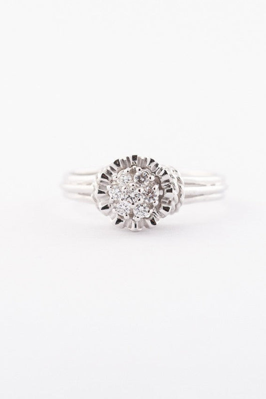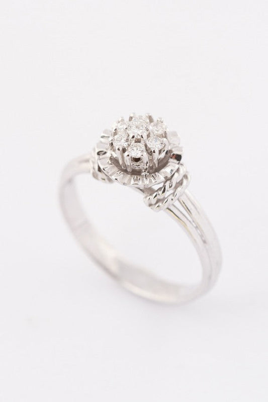 White gold entourage ring with 7 brilliant-cut diamonds. Approx. 0.24 ct.