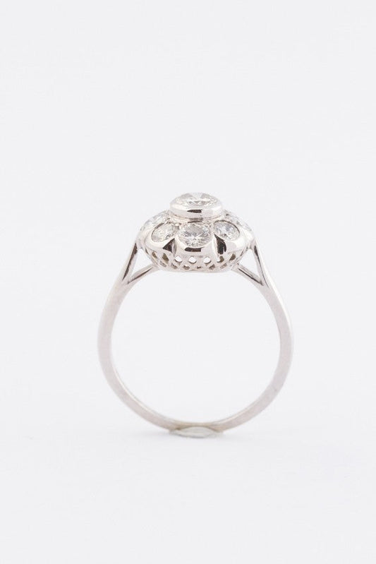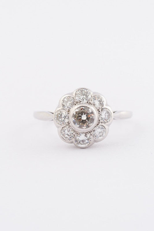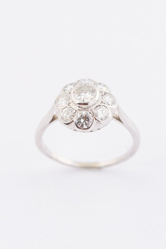 White gold entourage ring with 9 brilliant-cut diamonds. Total 1.00 ct.