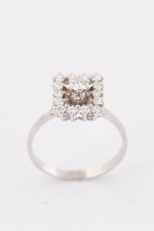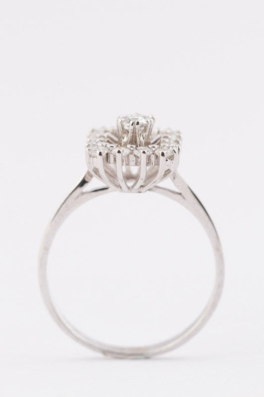 White gold entourage ring with diamonds. Total weight approx. 0.47 ct.