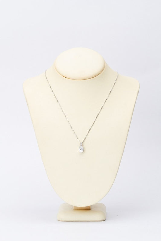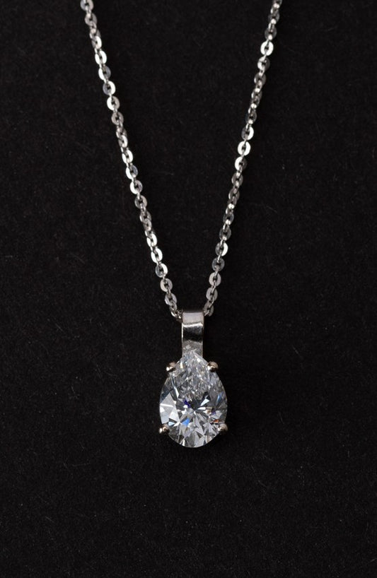 white gold pendant with a pear-shaped cut diamond on a white gold necklace