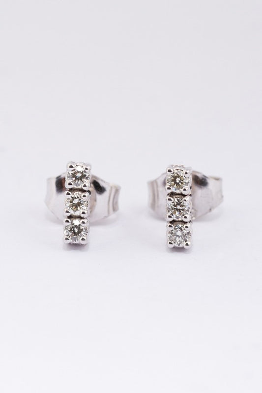 White gold earrings with three brilliant-cut diamonds each. Total weight approx. 0.15 ct.