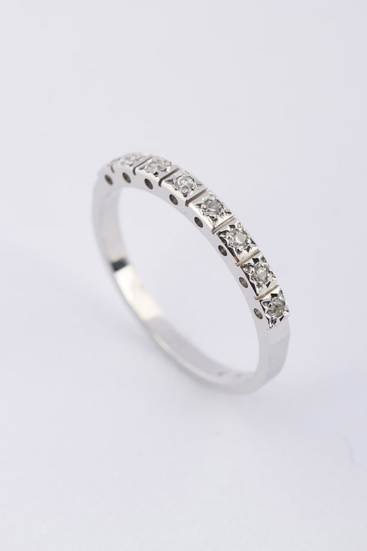 14 carat white gold row ring with 8 diamonds (8-sided).