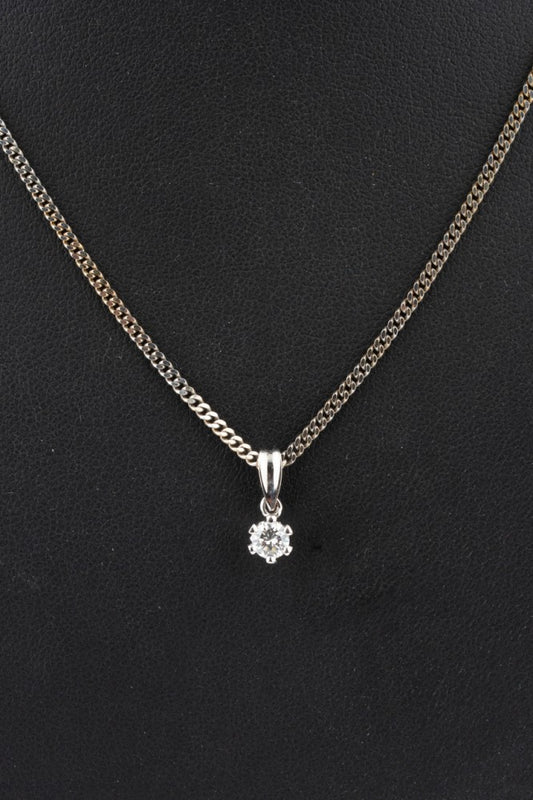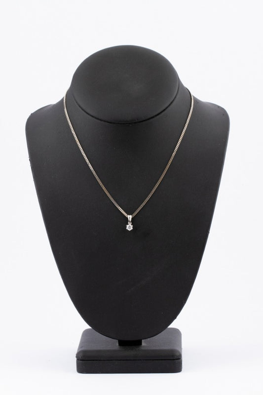 White gold solitaire pendant with a brilliant on a white gold necklace