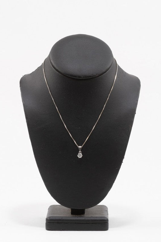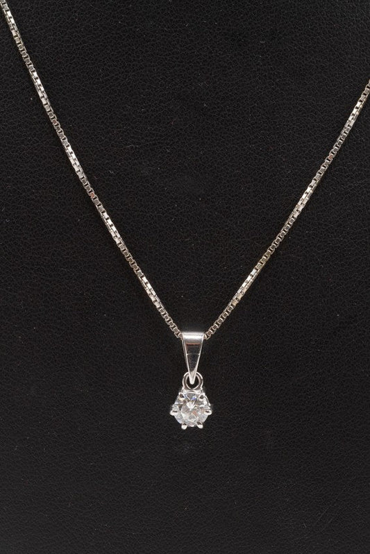 White gold solitaire pendant with a brilliant on a white gold necklace