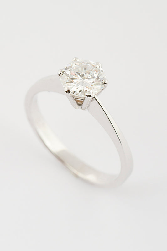 White gold solitaire ring with 0.98 ct brilliant cut diamond.