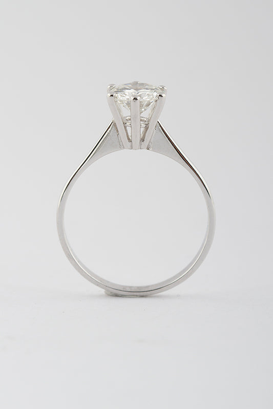 White gold solitaire ring with 1.07 ct brilliant cut diamond.