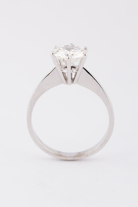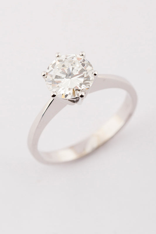 White gold solitaire ring with 1.65 ct brilliant cut diamond.