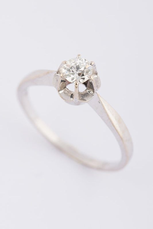 14 carat white gold solitaire ring with an old-cut brilliant of approx. 0.30 ct.