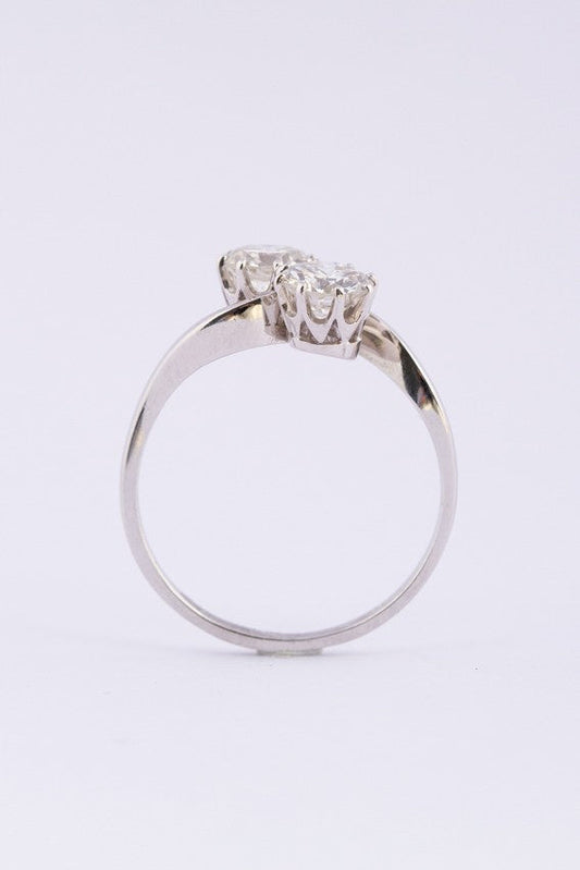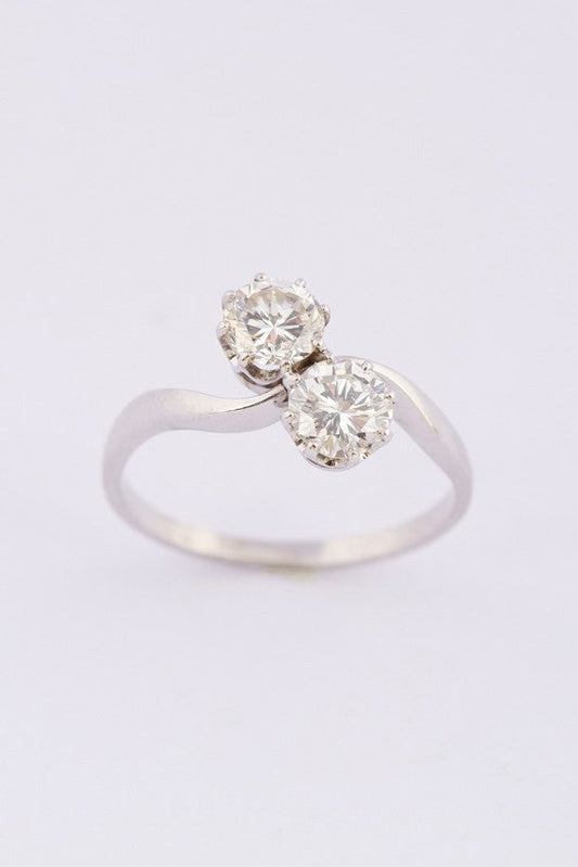 White gold so-called 'Moi et toi' ring (you and me)