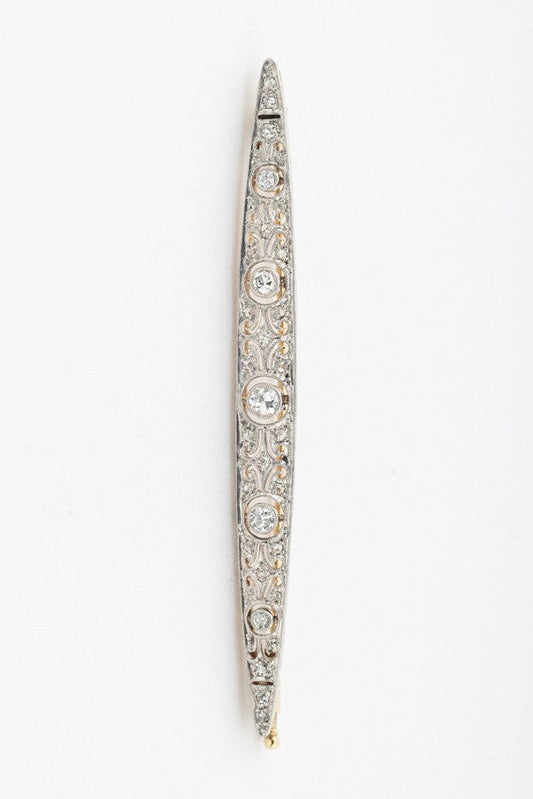 White/yellow gold brooch with 5 brilliant-cut diamonds and rose-cut diamonds