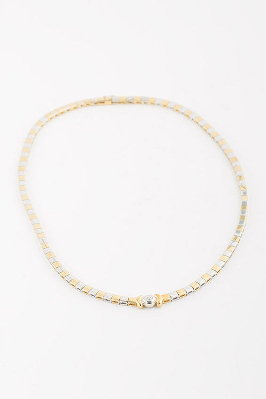 18 kt white/yellow gold necklace with a brilliant of approx. 0.16 ct.