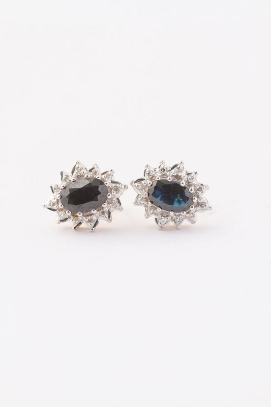 White/yellow gold earrings with a sapphire and 12 diamonds each