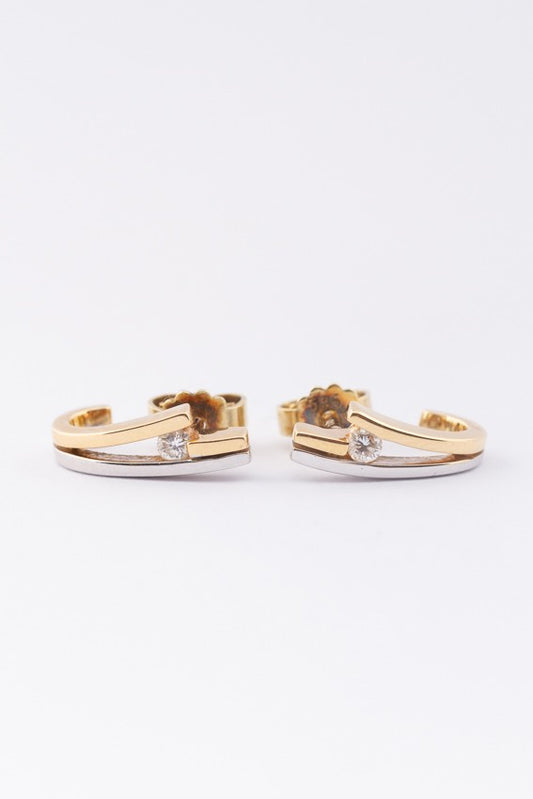 White/yellow gold stud earrings with brilliant cut diamonds